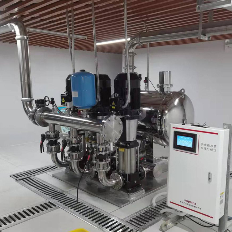 此次提升改造項目采用新型無負壓供水系統(tǒng)代替原有以水箱水池蓄水為基礎(chǔ)的二次供水系統(tǒng),對市政管網(wǎng)居民用水的水質(zhì)監(jiān)測提出了更高要求。