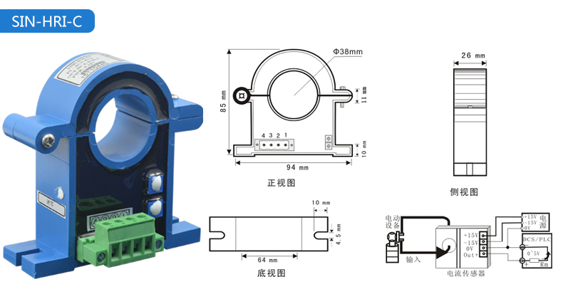 電流變送器可以直接將被測主回路交流電流或者直流電流轉換成按線性比例輸出的DC4~20mA(通過250Ω 電阻轉換DC 1~5V或通過500Ω電阻 轉換DC2~10V)恒流環標準信號,連續輸送到接收裝置(計算機或顯示儀表)。