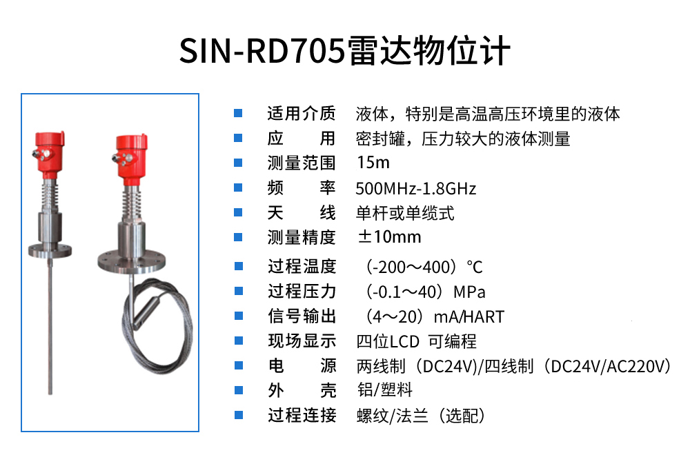 您的位置: 首頁 > 雷達液位計 >SIN-RD705雷達液位計_適用于密封罐,高溫高壓液體_