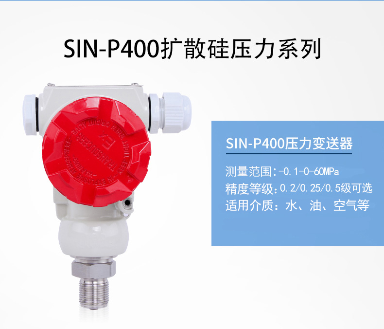 SIN-P400壓力變送器,采用全數(shù)字電路板,做到用戶可在一定范圍內(nèi)自行現(xiàn)場修改量程,極大的方便了現(xiàn)場使用。